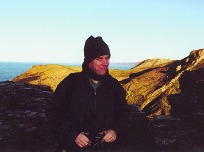 The picture on the left is Tom's photo of me. The above picture is my photo of Tom. Behind us (in both pictures) is the north coast of Cornwall, looking out on the Atlantic.