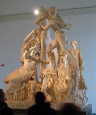 But the piece I really came to see was the Farnese Bull. This single block of marble represents Dirce being tied to the horns of a bull, as punishment for trying to trick her stepsons into murdering their own mother. Around the base were carved hundreds of little animals (fish, goats, turtles, lions, and more) representing "naturalness."