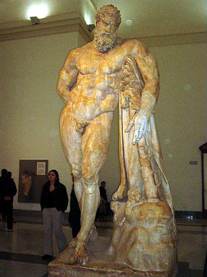 Upon entering the Museum, you walk down a long corridor lined with antique sculptures, into the hall that holds the grandest of the Farnese collection. I had seen the Hercules statue in many books, and was never impressed by it. Seeing it in real life was much better—a powerful, yet tired, Hercules. I was shocked at how many pieces of sculpture I recognized from art history books; I had no idea they ALL were in Naples! |