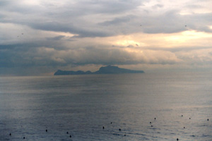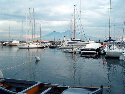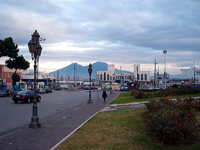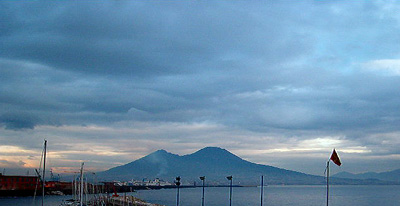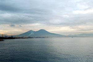 | Finally, our ferry arrived. After doubly-verifying it was the right one, we shortly set sail. There were lovely views of Vesuvius and Capri on the trip. The ferry ride was very nice, quite relaxing, but be sure to take your sea-sick pills if you're prone to motion sickness; it is a choppy ride across the bay! | |