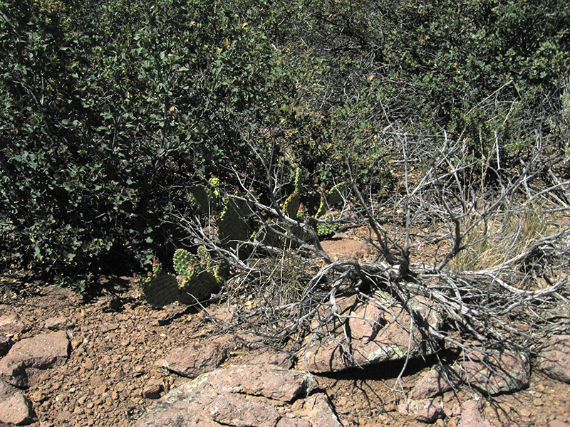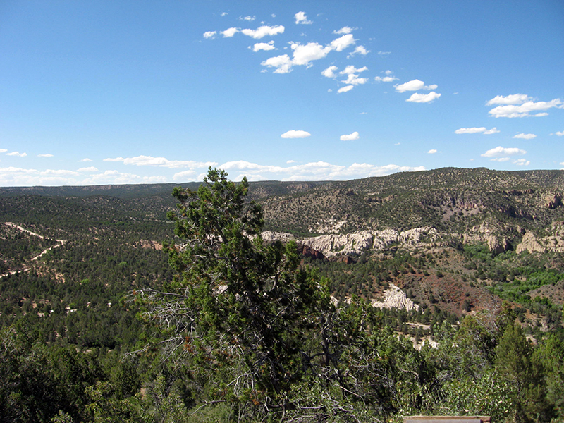| So instead, we found our way to the shorter Interpretive Trail, which led up (of course) to a high point over-looking the entire park. You can see our arrival road in the distance. |