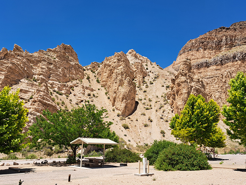 Well, this was a surprise. When I think of state parks, I have an image of the "poor cousin," the smaller neglected space that's only vaguely interesting, without amenities, and not having a lot of appeal. (I should be ashamed.) My come-uppance came here--what a splendid park! We drove past the stunning entry cliffs into a huge campground, with lots of room, picnic areas, trees, bathrooms (with running water and showers), and even wildlife. |
