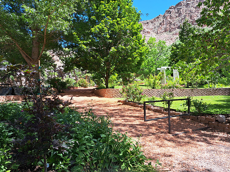 | And driving just a bit further uphill brought us to the park proper, with huge facilities including bathrooms and changing rooms, a big spring-fed swimming pool with attendant, horse shoe pits, a large rose garden, and plenty of shady benches on which to sit and rest and enjoy the view. And the birds and flowers. |