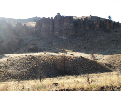 Before reaching our Saturday night destination (after a long day of driving), we hit the first part of the three-part John Day Fossil Beds. This area is called the Clarno Unit, and is noted for the large lava columns called "Palisades Cliff." About 44 million years ago, this was a jungle, and petrified logs and plant fossils are still visible.