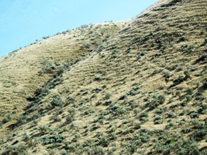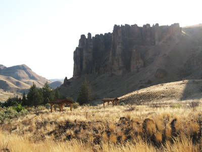 This area is where the verdant forests of the river turn into the sage and grasslands typical of eastern Oregon. Lewis & Clark called The Dalles the "trading mart of the Northwest" and its location between the east and west makes it clear why it was an early crossroads. Just past The Dalles is Biggs, which was our exit onto Oregon highway 97, one of the most wide-open and empty spaces I have ever been in. That idea was to be repeated in the following days, as we travelled across some of the last "frontier" space in North America. The land was spectacularly beautiful along the "Journey Through Time Scenic Byway." I loved to roll down the window in our Jeep SUV and smell the sagebrush. From a distance, it seemed the hillsides were covered in burlap, but that was the texture of dried grass. It was always a surprise when another car would appear, and houses or ranches could be counted on one hand for the 120-mile drive from Biggs to the small town of Fossil. The only town of note we went through was Shinako, which is basically a ghost town.