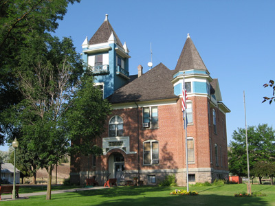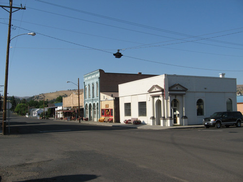 This is pretty much downtown Fossil. In the next block (to the right) is RJs, and across the corner is the Country Cafe, both delicious small-town eating at its belt-loosening best. The blue building in the center is the Fossil Mercantile General Store--a wonderful store, not just for water and groceries, but with fine t-shirts and even some extremely well-priced quilts for sale. Below is the offices of the county seat in Fossil, and the picture on the right is the cabin where we stayed, the Fossil Motel and RV Park. Wonderful beds, great views, cheap rates--what else could you ask for? But there was also a very nice, friendly proprietor, Ann, who was a fountain of information about the area, and at midnight one could see the stars.... I wondered at the lack of air conditioning, since it was very hot when we arrived in Fossil, but I understood when we had to get up in the middle of the night to get extra blankets for the beds. It gets cold at night. And then, the sunrise, sitting in the chairs out front, watching the deer and the antelope (really) grazing on the adjacent hillside, peacocks roaming and crying, roosters crowing, horses stretching in the cool dawn air.