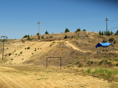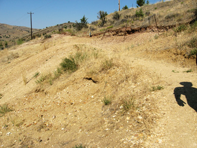 After a (too) hefty breakfast at the Country Cafe, we had to do what we came to do: fossil hunting in Fossil! Just behind Wheeler High School is a large hillside. It was originally intended to be removed and used for football, but the townfolk found it was a rich fossil bed. So they left the hillside, and instead set up a little hut where you can pick up hammers and buckets, and dig out fossils to your heart's content (if you can stand the heat). They suggest a donation of $5, and the fossils are yours to keep (unless you find something special, which they then request you to turn in--all on the honor system, of course). We brought back two small boxes of fossils, mainly leaves from the Oligocene period.