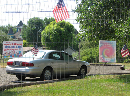 There were "fossils" of another type as well, always very visible in small town America. Of course, we have them in big cities as well--they just don't stand out as much! Take your conspiracy theory pick: chem bombs, TMCs, Impeach Obama, or Bless God and Stop Abortions.