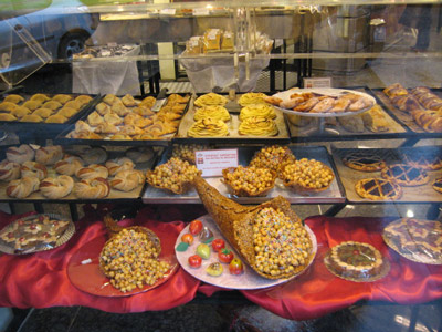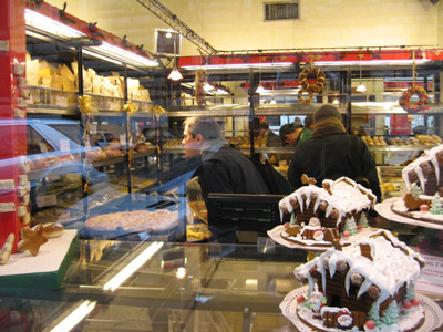 The street bisecting Giovanni Lanza was Via Merulana. This pleasant, wide thoroughfare had lots of little bars and trattorias, but the best place on the street was a store called Panella Bread. This elegant shop baked dozens of kinds of bread, many by centuries-old recipes. Their windows were full of gingerbread houses and other Christmas charms (and yes, I had some of their chocolate crackers). Tom was especially fond of their cornbread—perfect for breakfast with some fruit and coffee. |