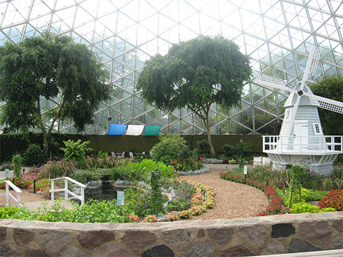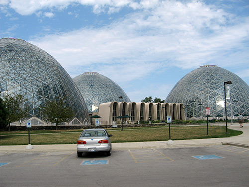 While driving in Milwaukee, I quickly learned that any time one took a wrong turn, one ends up on I-94, which runs through the heart of the city. Whenever I made the mistake and found myself headed west on I-94 (more than once!), I would see these strange egg-shaped gray domes glistening on the horizon. Finally, I looked them up and learned about the Mitchell Park Domes. Mitchell Park is the oldest park in Milwaukee, dating to 1889. It originally housed a traditional glass greenhouse. In 1959, the old greenhouse was replaced with three "conoidal" domes that house the botanical collections. They were restored in 2008, and now house plant collections in the Tropical Dome, the Desert (Arid) Dome, and the Show Dome. |